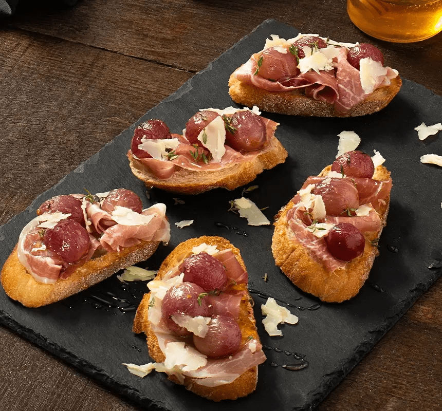 Planning a gathering or just preparing some thing for yourself? With sweet roasted grapes, salty prosciutto, and rich Balderson Canadian Heritage Cheddar 5 Year Old, these crostini are the perfect way to fulfill any craving.