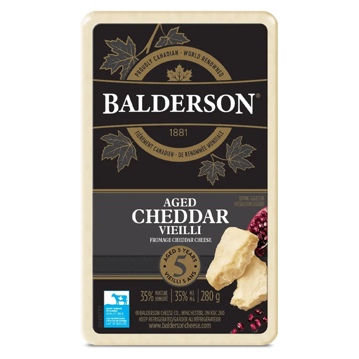 Our Heritage Canadian Cheddar Cheese 5 Year Old has a strong but pleasant sharp taste that’s developed with age and full cheddar flavour. It features a stronger aroma and acidity, but it is still satisfying and clean to the senses. This cheddar will exhibit larger salt crystals as part of the additional aging process.